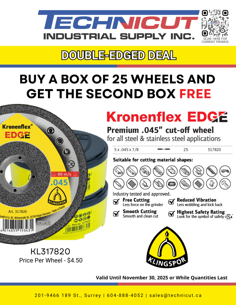 At Technicut Industrial Supply, we post clear, simple deals on trusted brands. We’re proud to bring our customers some of the best tool promotions and supplier discounts. Whether you’re a machinist, fabricator, or maintenance professional, our promotions page highlights limited-time savings on trusted cutting tools and metalworking products from industry-leading brands.